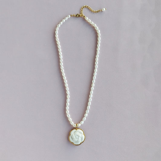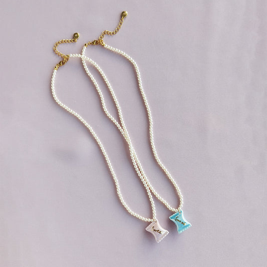 Sweet Pink Porcelain Balloon Doggie Pearl Necklace