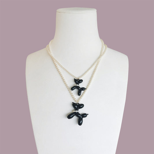 Black Porcelain Balloon Doggie Pearl Necklace