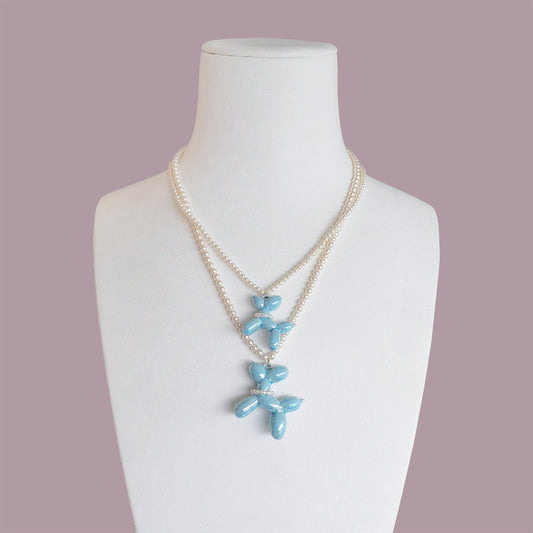 Baby Blue Porcelain Balloon Doggie Pearl Necklace