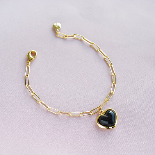 Sale 10%Porcelain Black Heart Charm Bracelet