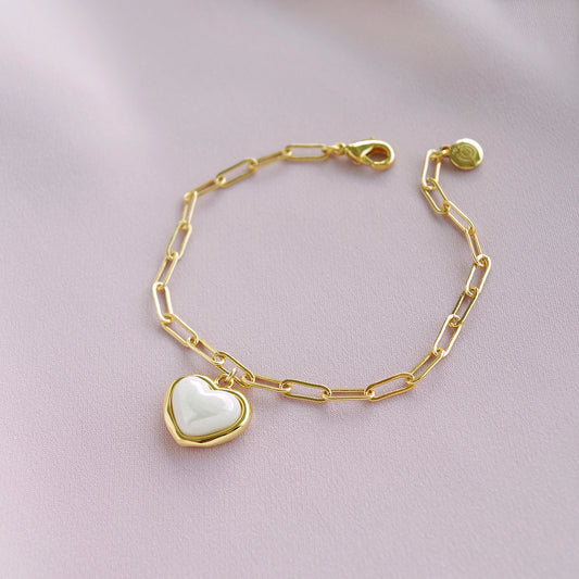Porcelain Pearly White Heart Charm Bracelet