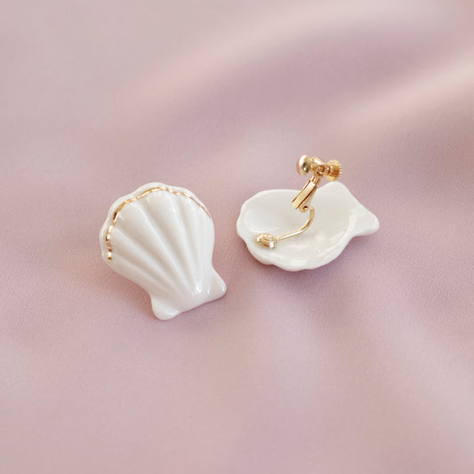 Porcelain Clam Shell Clip-On Earrings