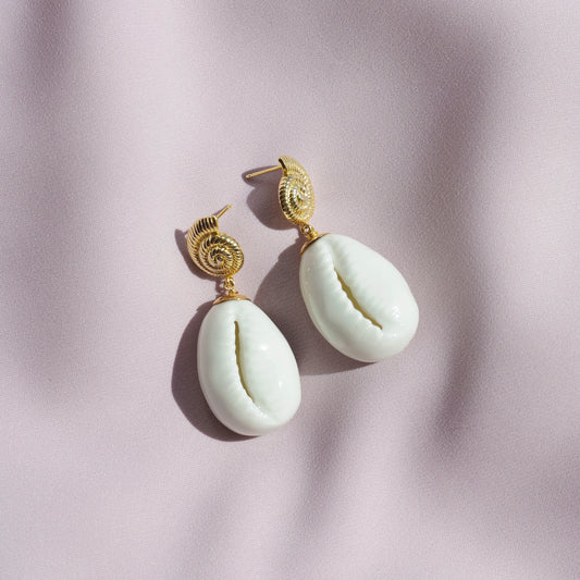 Porcelain Cowrie Shell Teardrop Earrings