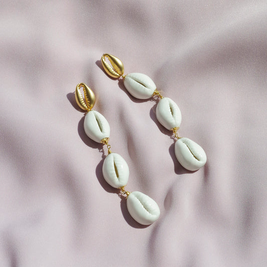 Porcelain Cowrie Shell Linear Earrings