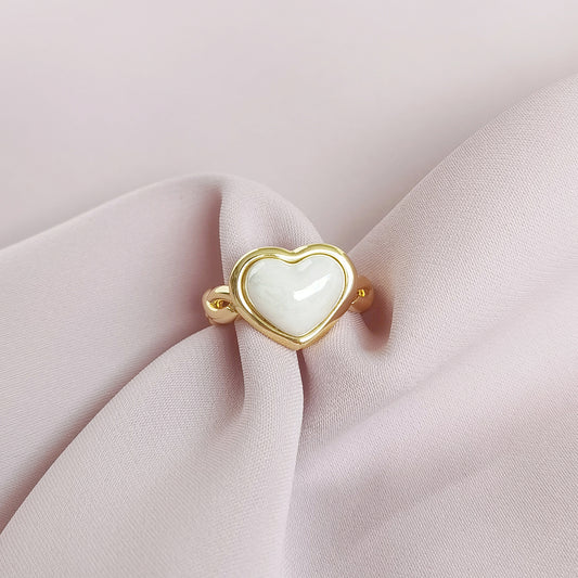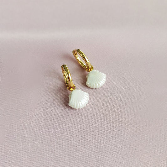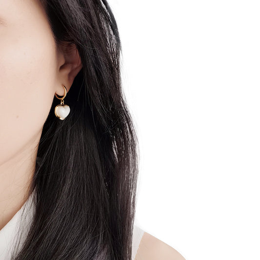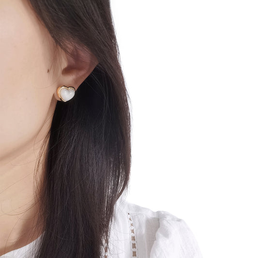 Porcelain Pearly White Heart Clip-On Hoop Earrings