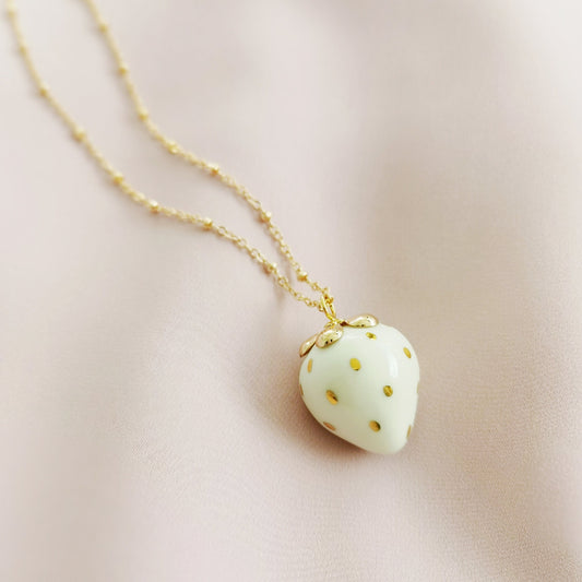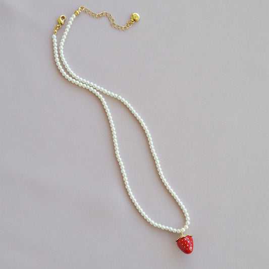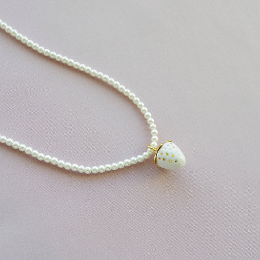 Mini White Porcelain Strawberry Swarovski Pearl Necklace