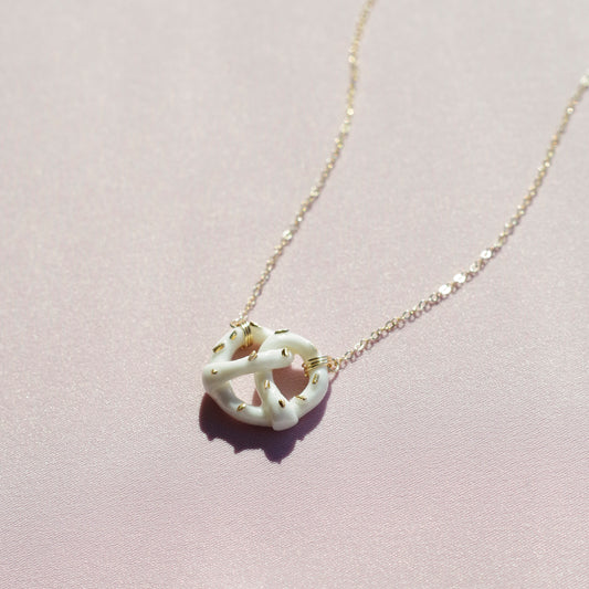 Golden Salted Porcelain Pretzel Pendant Necklace