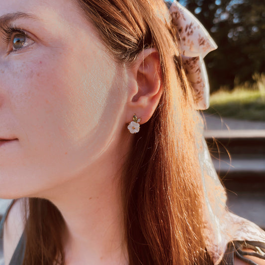White Cloud Porcelain Rose Stud Earrings
